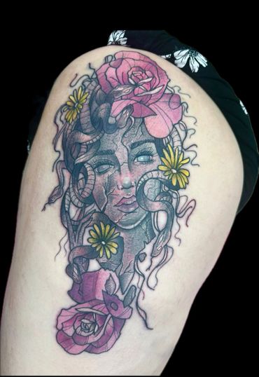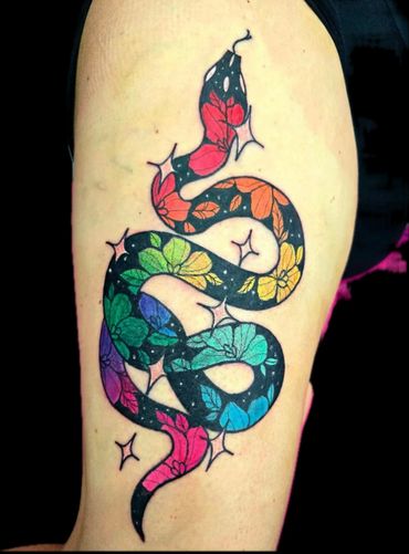 I specialize in watercolor, fantasy-inspired, and mythology-themed tattoos, blending color, symbolism, and storytelling into every piece. While those styles hold a special place in my heart, I’m always excited to experiment with new ideas and take on unique artistic challenges.