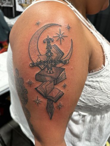 Outside of tattooing, I’m pursuing a degree in Art History through online studies to deepen my understanding of the art world. I love spending time with my husband and children, exploring new places, and getting lost in a good book. When I find a quiet moment, you’ll often find me painting or sketching—always creating in one way or another.